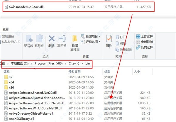 4、然后将Crack文件夹内SwissAcademic.Citavi.dll破解补丁复制到软件安装路径bin文件下即可破解软件