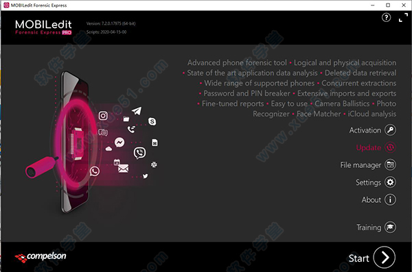 MOBILedit Forensic Express Pro破解版是一款非常出色的一体化手机取证软件,M该软件专业版采用了先进的数据分析方法,可以将手机上删除的数据进行恢复,支持的手机类型也非常的多,可以轻松从手机设备上获取任何想要的数据。该软件专业版能够绕过安卓手机的锁屏,即便加密也可以轻松破解。MOBILedit Forensic Express是一个解决方案中的电话提取器,数据分析器和报告生成器。它是一个使用物理和逻辑数据采集方法的强大应用程序,非常适合其先进的应用程序分析器,已删除的数据恢复,支持的电话范围广泛(包括