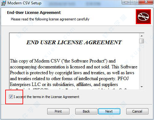 2、然后双击运行ModernCSV-Win-v1.0.msi应用程序进行软件安装,进入向导界面点击“i accept the terms in the license agreement”