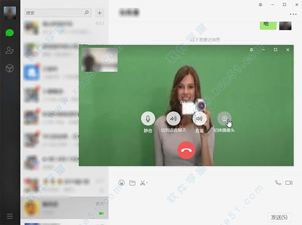 如果您电脑上没有别的摄像头,只有 VCam,则在微信中开始视频通话后就会自动显示 VCam 的视频。