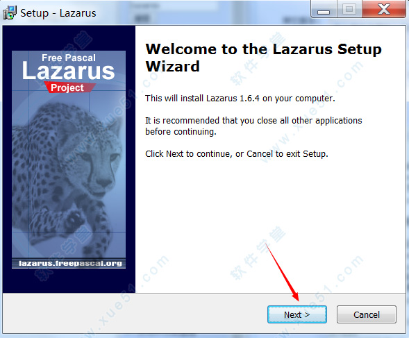 1、在本站下载好压缩包,解压缩文件,双击运行“lazarus-1.6.4-fpc-3.0.2-win64.exe”程序,弹出软件安装向导,默认点击“Next”按钮开始软件的安装向导;