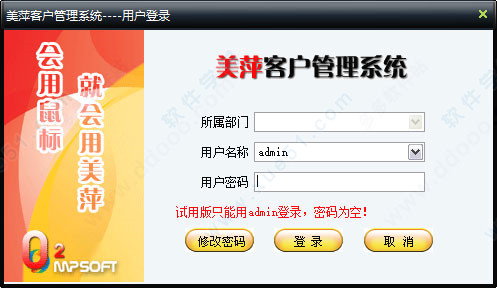 2、运行软件,用户名称“admin”,密码默认为空,点击登录;