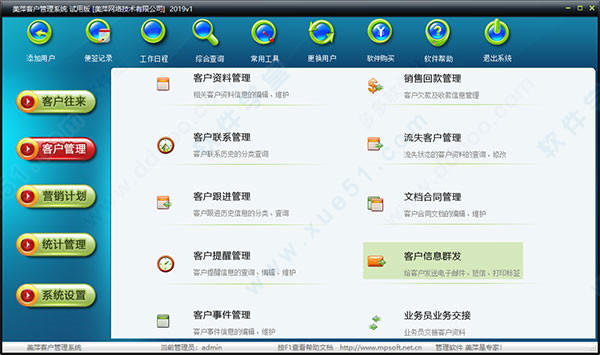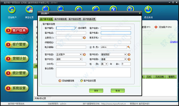美萍客户管理系统是一款专业的客户关系管理软件(CRM管理系统),软件以客户为中心,实现市场、、服务协同工作统一管理。帮助企业规范流程、提高客户挖掘能力和客户服务质量、有效管理客户资源、提高成功率,达到全面提升企业核心竞争力的目的.美萍客户关系管理系统广泛适用于各个行业进行客户管理,是您企业进行客户档案管理,客户资料管理,客户服务管理,客户信息管理的强大工具。