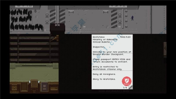 你作为移民检查员的工作是控制从Kolechia进入格雷斯廷Arstotzkan一侧的人流。 在移民和游客寻找工作的人群中,有隐藏的走私者,间谍和恐怖分子。