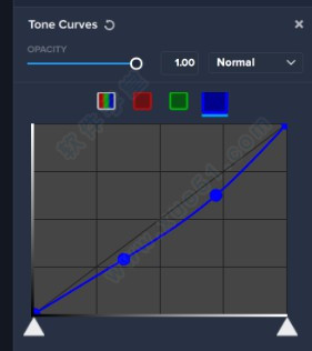 1、我们在色调曲线中选择了蓝色框后做出了一种弓形形状。由于蓝色是与黄色形成鲜明对比的颜色,因此通过调整蓝色在图像中的显示方式,我们可以更清晰地看到图像中的黄色。