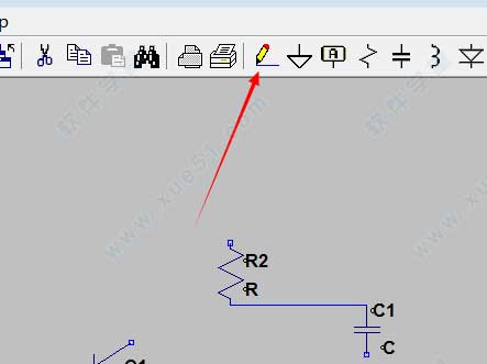 5、点击图中铅笔标识便可以绘制电路图线路。