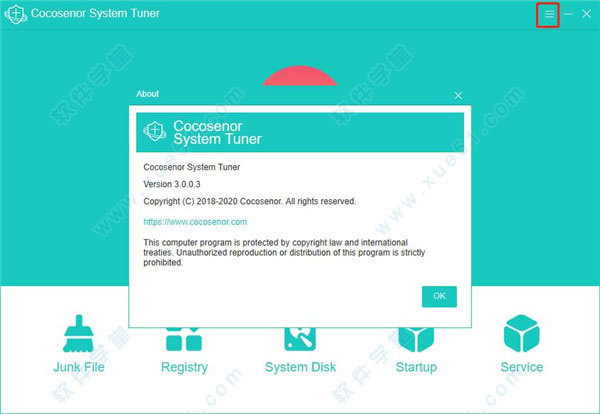 System Tuner是一款功能强大的电脑系统保护软件,不仅可以自动拦截存在安全隐患的文件,让你的电脑系统始终处于安全的状态,而且还可以快速有效帮助你清扫系统垃圾,改善电脑性能,释放更多的运行资源和存储资源,让用户的电脑使用起来更加流畅。无论你的系统是多么干净,或者再好配置的电脑在使用一段时间后都会积累一些垃圾文件,导致拖慢电脑运行速度,给你的使用带来不便,那么就需要使用到电脑优化改善软件,帮助用户清理系统中不需要的垃圾文件,快速清理电脑残留垃圾,提升你系统的运行速度,同时可对文件注册表进行扫描修复、电脑体检、查杀木马、电脑清理、系统修复、优化加速等,全方位的保护你的电脑,高效、安全地提高你的系统性能。这里为大家带来了Cocosenor System Tuner破解版下载,下文提供了软件破解教程和使用教程,用户可参考借鉴,需要的朋友快来下载体验吧。