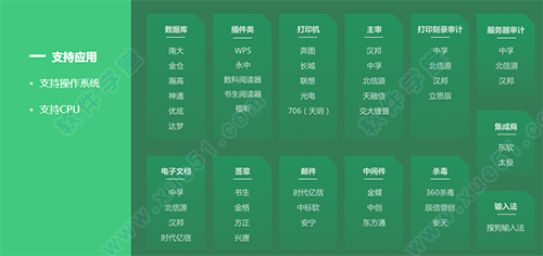 支持传统X86平台的基础上,全面支持龙芯、兆芯、飞腾、鲲鹏等国产CPU以及中标麒麟、银河麒麟、深度、红旗、普华、一铭等国产操作系统,并与插件、签章、