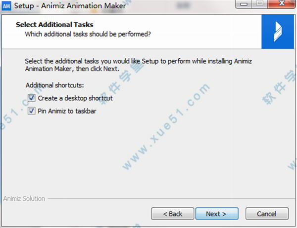 3、对软件的安装位置进行快速的选择,默认位置“C:Program Files (x86) Animation Maker”,建议安装在D盘,点击Next;