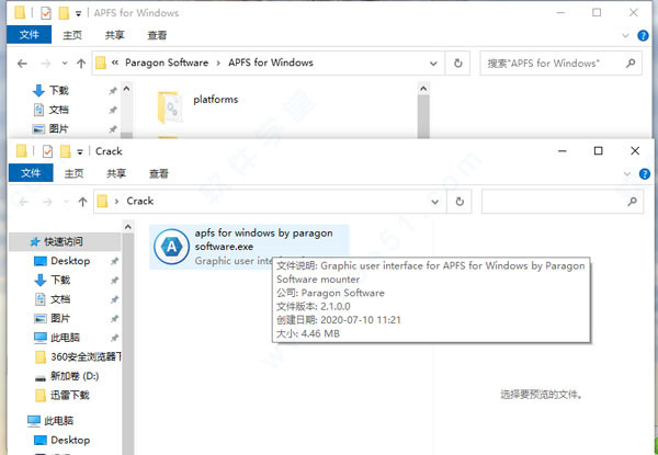 6、将破解文件夹中的APFS for Windows by Paragon Software.exe复制到安装目录中,点击替换目标中的文件