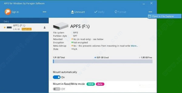 Paragon APFS又叫APFS for Windows,它是Paragon公司生产的一款非常好用的磁盘管理工具,可以让用户直接访问电脑上的Apple File System(APFS)卷,软件并且具有读取和访问的所有权限,还能够对其进行加密功能,非常适合与在Windows系统运行的计算机读取相关的HDD、SSD等驱动器上的文件信息等,软件还支持用户们将APFS转换成HFS+格式等,直接在不同系统分区的Windows里面读取mac系统的文件内容,不管文件的存储介质是电脑磁盘,移动固态硬盘等软件都是支持运行的,极大的提高了用户们的工作效率,软件还能和想关的应用共同使用保证遇见任何问题都能够快速的解决掉,最重要的是软件还不占用什么内存哦,减轻用户电脑系统的负荷,在这本站为大家带来Paragon APFS破解版,还有相对应的安装教程之类的,用户能够免费使用全部功能,喜欢的快来下载使用吧!