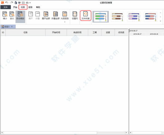 2、在操作界面顶部功能区,选择【视图】-【文件恢复】,这样就能找到近期备份的文件。