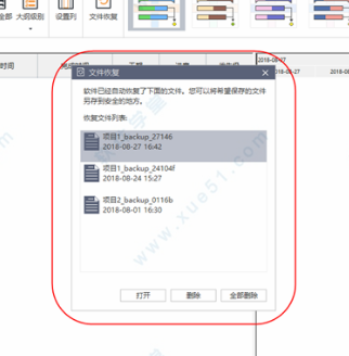 3、之后会弹出一个小窗口,里面是软件近期操作过的文件,你可以选择打开或者删除文件。
