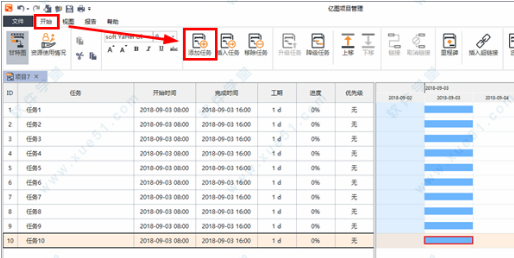 2、添加项目:进入项目管理界面之后,用鼠标点击“开始”菜单栏下的“添加任务”来新增项目,或者用快捷键Enter也可以快速进行添加。
