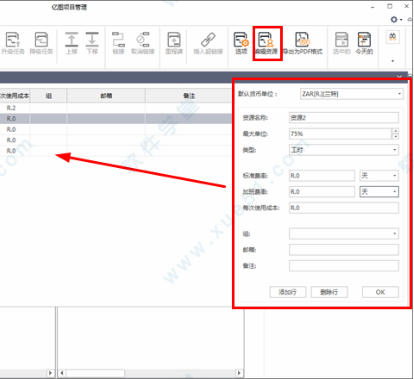 4、设置资源:每个项目的完成都需要耗费一定的资源,资源的使用都有相应的成本,Edraw Project中将资源分为5类,即:工时、材料、成本、设备、公司。在开始菜单栏中,点击“编辑资源”,可以对资源成本等信息进行设置。
