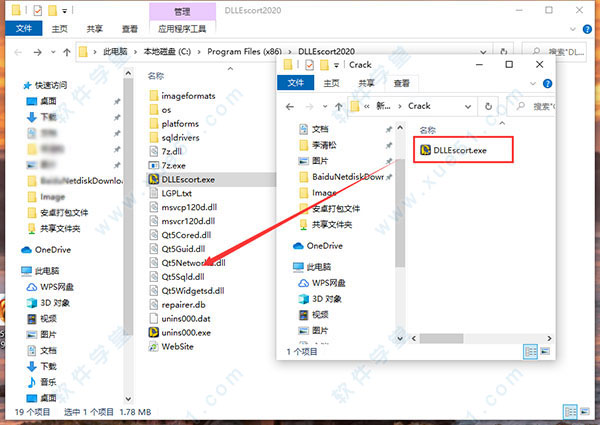 3、将Crack文件内DLLEscort.exe破解文件复制到软件安装路径下进行替换即可破解软件成功