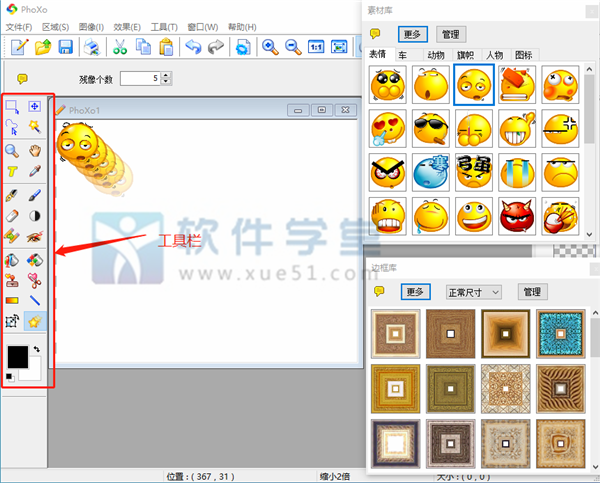 易笔易画是一款家庭用图像编辑器。该软件的设计理念是让所有人都可以在短时间内修饰自己照片。而既然受众面比较广,软件的操作就要十分的简单。该软件的操作可以说傻瓜式的操作几乎只要用过电脑的用户就可以快速的熟练软件的操作。偏向大众的设计理念让该软件成功的走进了万千家庭,而操作简单并不代表着功能的缺失,软件的功能种类也是十分的丰富。它能够对你的照片进行很多类型的编辑,能够添加各种可爱的表情还能够对你的照片添加相框。软件中内置了很多的素材供给用户选择,同样也有各种各样的相框。并且该软件支持图层操作,能够建立不同的图层让你的多张照片可以叠加或者添加背景。当你想要给照片添加背景的时候,只需要插入一张图片然后将图片的图层设置为底层这样就可以给你的照片添加背景了。该软件占用空间小,操作简单适用于大众重要的