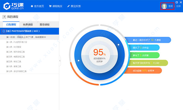 问:巧课的教学模式是什么样的,是不是视频教程?跟视频教程完全不一样,巧课是导航式的教学模式,即直接在你本地电脑的PS里面一步一步引导你去操作。它有以下两个最大的特点