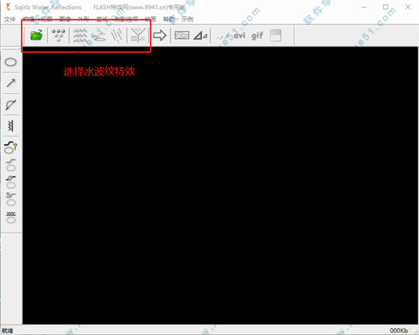 4、除了可以保存为SWF文件,它还能为AVI视频动画添加波纹,当然还有静态的水波效果