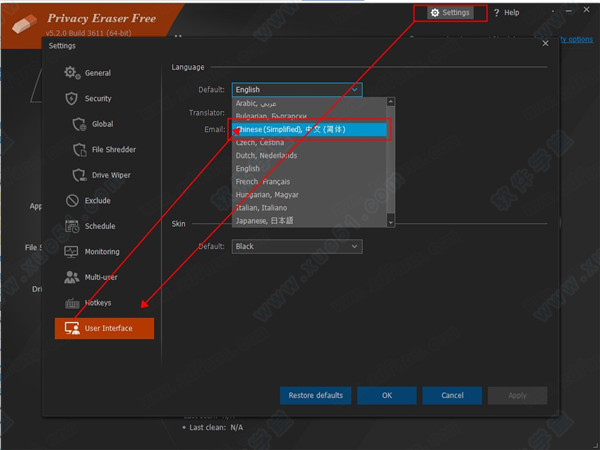 1、因为是绿色版我们可以直接打开Privacy Eraser Free,但是是英文版