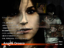 安吉拉·欧罗斯科,アンジェラ?ァ¢スコ(Angela Orosco)19岁。黑发,棕色眼睛。她对陌生人很害羞,安静而忧郁。她看起来是个普通的女孩,但在面对死亡和性事的态度上,她显然和其他人不同。她的价值观很奇怪,而且她有着危险的气场。她在高中毕业之后就从家里逃了出来,但她的父亲找到了她,并把她带回家。之后她再一次逃了出来,然后在流浪中走进了寂静岭