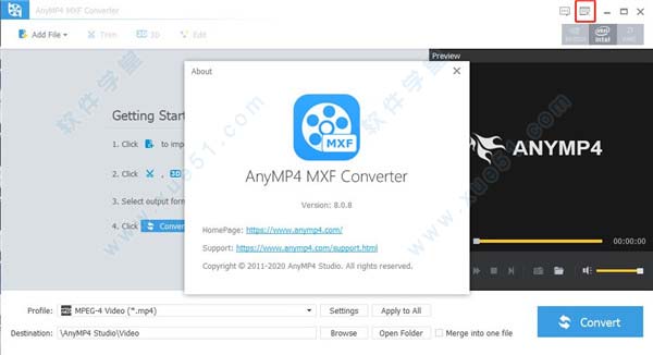 6、好了,软件已经安装破解完成,MXF格式转换器anyMP4 MXF Converter破解版成功注册,用户可免费使用