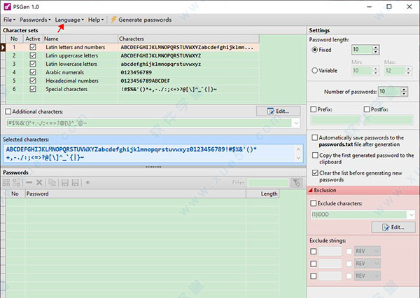 1、该程序一次可以生成100,000个密码,如果需要更多密码,只需将密码数量设置为最大值,然后多次单击“生成密码”按钮(或F5键)。