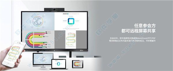 会中-多方实时互动可实时展示Word、Excel、PPT等Office文档、音视频文件以及其他应用程序