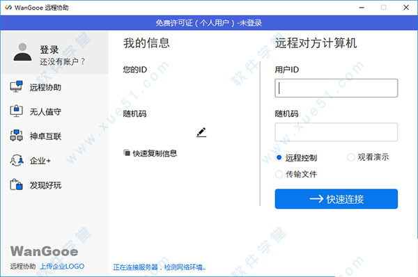 WanGooe远程控制免费版,需要的老铁们快来下载使用吧,能够满足你远程控制和远程协助的使用需求。