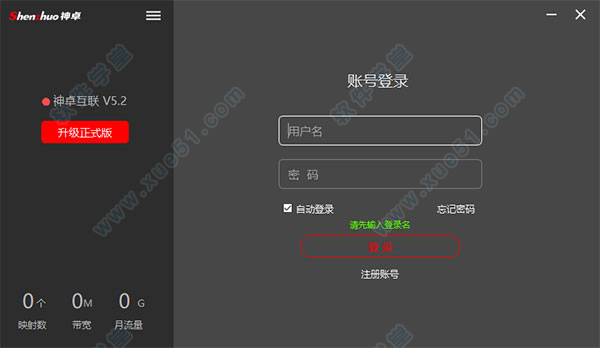 3、填写登录账号,如没有账号可注册一个用户账号,注册完成后点击登录按钮。