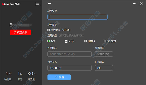 外网域名和外网端口为系统随机,用户无需填写。