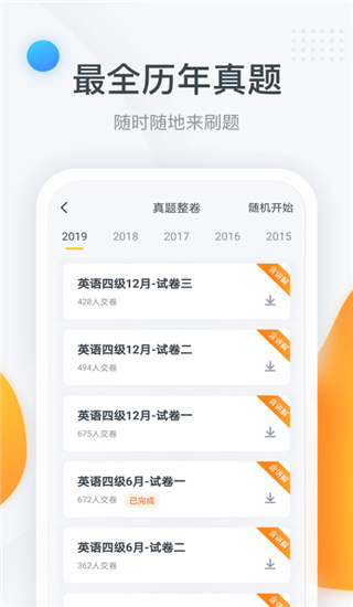 收录教育部四六级考试全部题库,英语四六级历年真题及模拟题一题不落