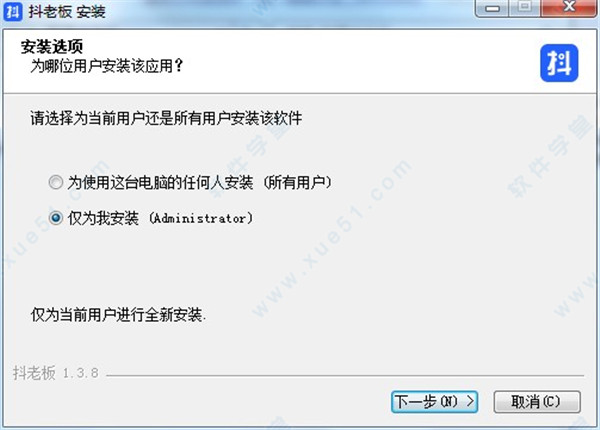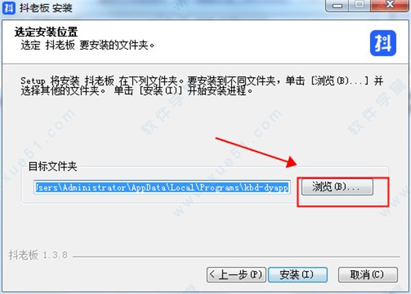 1、从软件学堂下载抖老板的安装包,解压之后找到对应的“.exe”安装向导,双击运行。