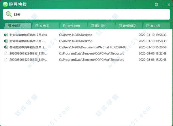 1、豌豆快搜作为本地文件搜索工具,支持全盘文件搜索,输入关键词,立即匹配文件,短短几秒就能找到电脑中的任何文件。