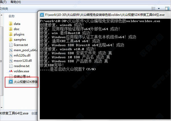 2、双击运行"火山视窗SDK修复工具64位.exe"程序,在命令行中输入Y启动软件;