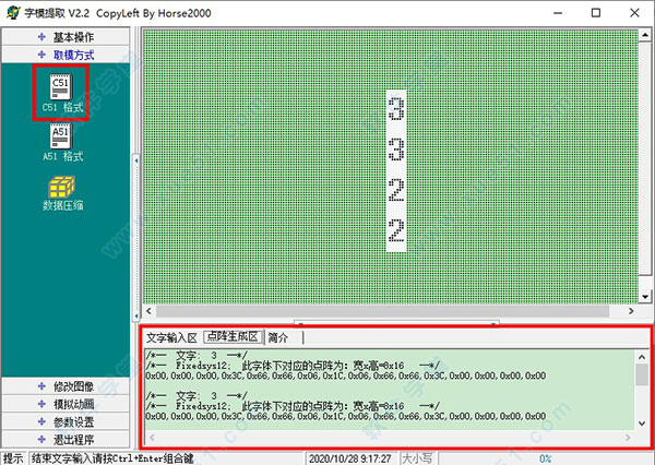 9、字模提取v2.2绿色版提供图象保存功能,数据保存为文本文件的功能。
