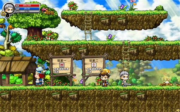 1、操作详解:冒险王支持鼠标和键盘双操作,战斗时以键盘为主鼠标为辅,其中系统默认操作按键为:爬梯子、进传送点:W、向左走:A、向右走:D、下梯子(捡东西):S、普通攻击:J、跳跃:K、技能1快捷键:1、2、3、4等。