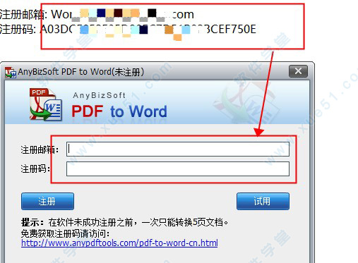 anybizsoft pdf to word破解版,内含注册码,可以通过它激活破解软件,可免费使用全部功能,软件无任何功能限制,小编亲测可用,需要的朋友快来下载试试吧。
