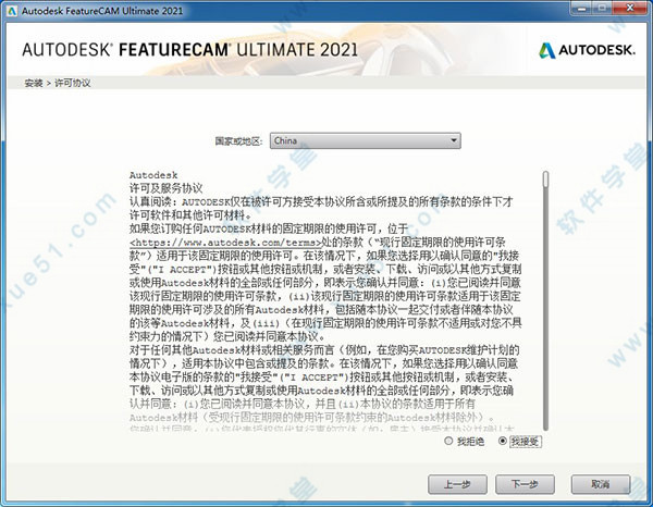 3、勾选我接受许可协议,点击下一步