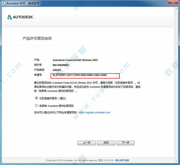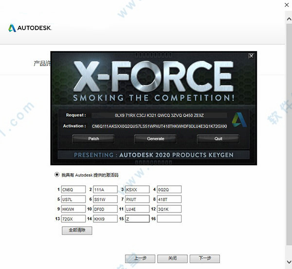 16、将申请号复制到Requedst中,点击Generate即可得到激活码,此时复制激活码,在激活界面中,复制刚才粘贴好的激活码,点击下一步