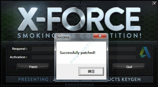 15、打开Crack文件夹,以管理员身份运行“xf-adesk20_v2.exe”文件,点击“patch”,弹出“successfully patched”,点击“确定”