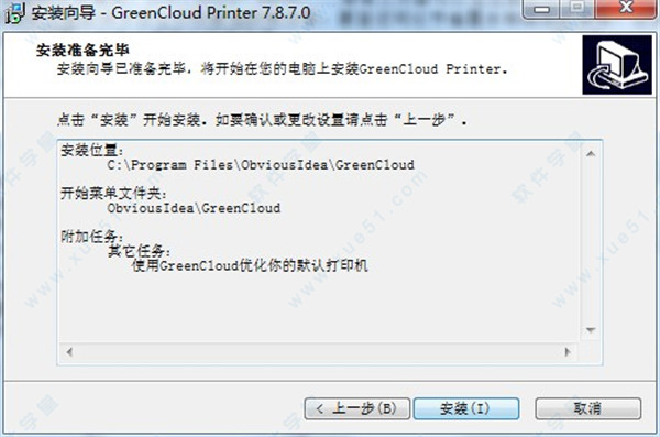 6、确认GreenCloud Printer安装信息无误之后,点击安装,等待1-2分钟。