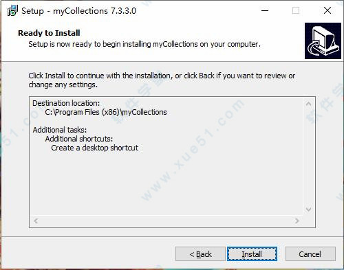 安装向导默认设置的软件默认安装路径为C:\Program Files (x86)\myCollections