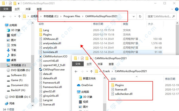5、最后将CAMWorksShopFloor2021文件复制到软件安装路径下进行替换即可完美激活软件