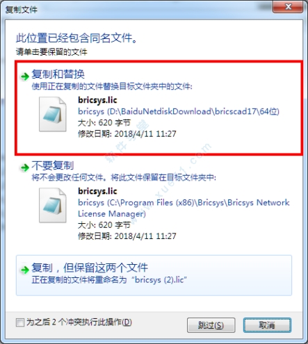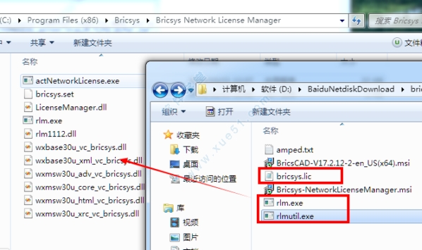 6、将下图所示文件拷贝覆盖安装目录下的对应文件,默认目录为C:\Program Files (x86)\Bricsys\Bricsys Network License Manager