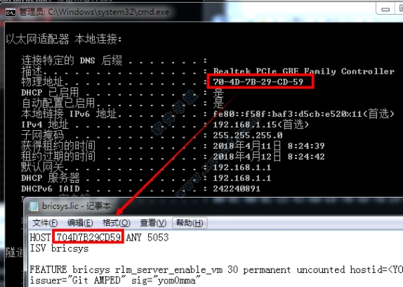 5、回到安装包,用记事本方式打开bricsys.lic,将物理地址替换lic的localhost,保存后退出