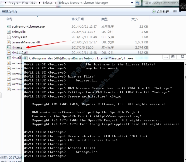 8、运行rlm.exe,出现以下提示,先不要关闭