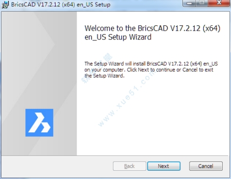 2、运行主程序文件夹下的BricsCAD-V17.2.12-2-en_US(x64).msi,安装软件,按照提示安装即可。