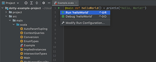 IntelliJ Scala插件已经包含了对即将到来的Scala 3的支持,已经有一段时间了,我们正在努力跟上所有新更新。特别是,Scala插件现在可以理解主要方法的新语法。工程Hello Worlds从未如此简单!