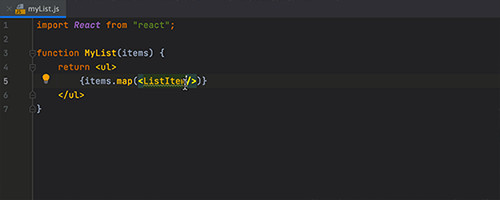 您的代码中有未解析的React组件吗?将插入符号置于其上,按Alt + Enter,从列表中选择Create class / function component,然后IDE将为您创建相关的代码构造。